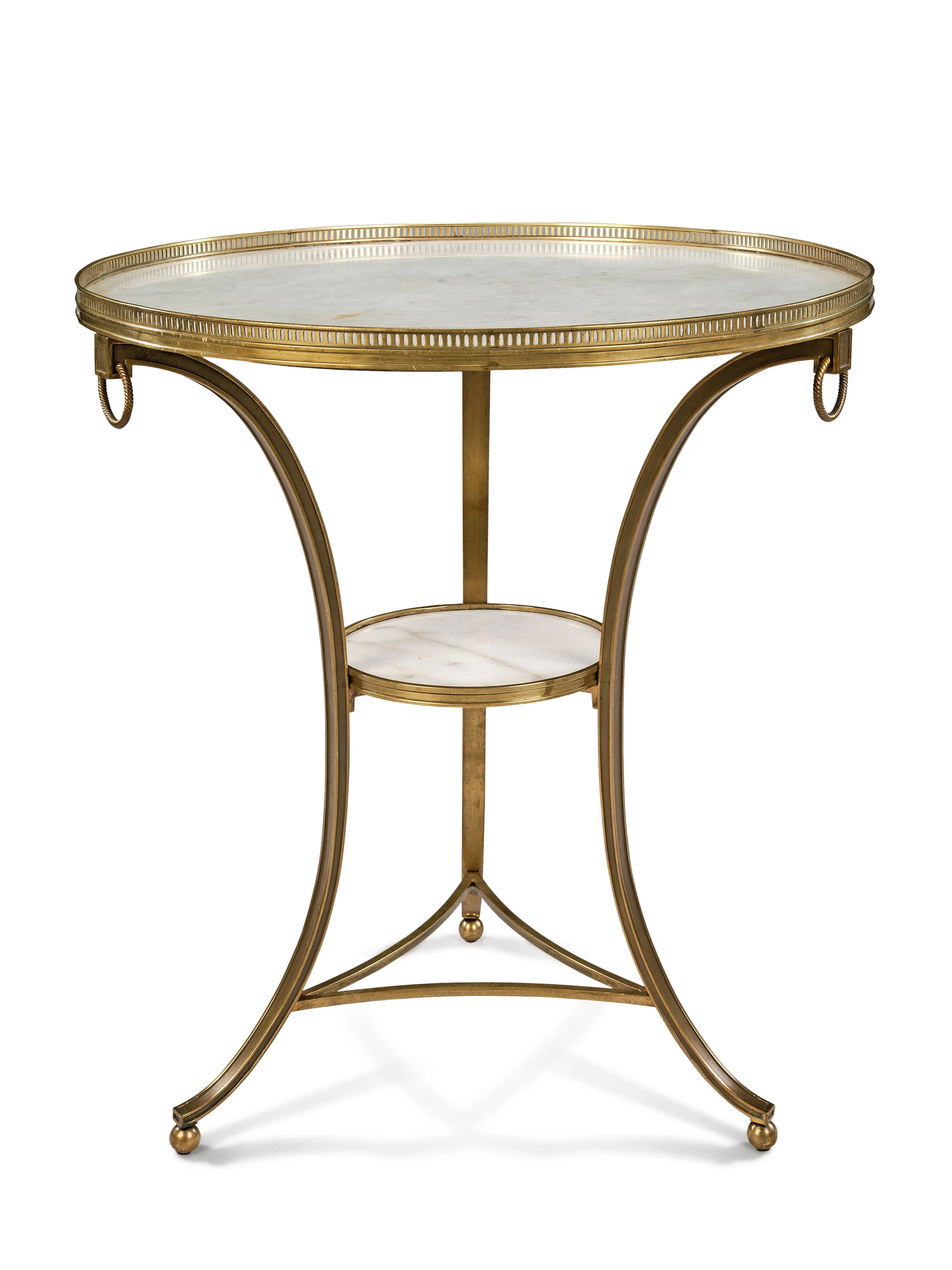 This gueridon is a re-interpretation of one of the most enduring neoclassical models of the Louis XVI period, at the end of the 18th century. The form found renewed popularity in the late 19th century, and again in the interwar years of the Twentieth. This is an exceptionally well made example, with notably fine casting of the gilt-bronze legs and handles.